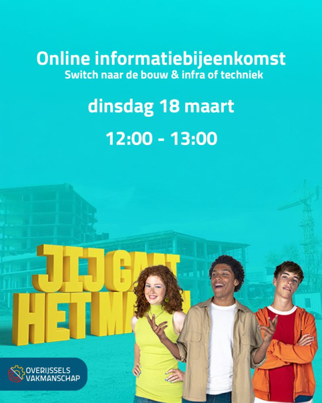 Tijdens deze bijeenkomst krijg je meer informatie over de ontwikkelingen in de sectoren bouw en infra. En je hoort van begeleiders welke mogelijkheden er zijn voor mensen die overwegen over te stappen. Een snelle en handige manier dus, om je te oriënteren of de overstap naar de bouw of infra wat voor jou is.