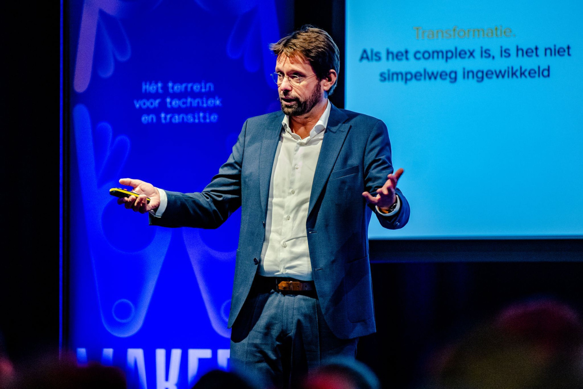 Keynote spreker Bart Götte MBA nam de aanwezigen mee in de transitie van werk. “We hebben nog nooit zo’n grote beroepsbevolking gehad. Ook is Nederland koploper in Europa als het gaat om arbeidsparticipatie. Vaste aanstellingen zijn de norm. De formele werkweek is kort, maar informeel werk als mantelzorg doen we steeds meer”, schetste de trendwatcher een beeld aan de hand van diagrammen en getallen. “Arbeidsproductiviteit gaat stagneren. De limiet is bereikt.” Het oude systeem is volgens Bart niet houdbaar, maar het nieuwe systeem is er nog niet. “We moeten van harder werken naar slimmer samenwerken. Wat kun jij doen binnen jouw mogelijkheden? Technologie is niet de oplossing voor alles, maar jouw beste maatje om werk te verzetten.”