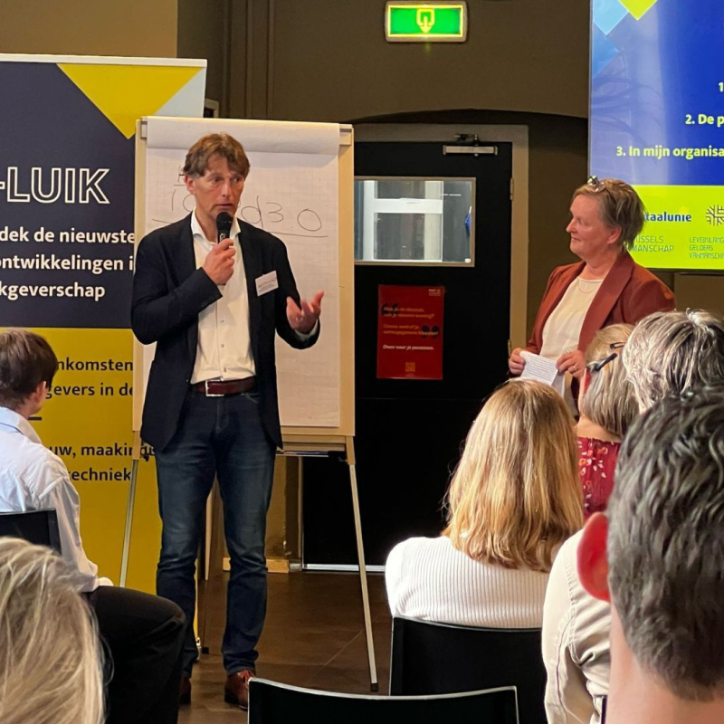 Tot slot gingen de deelnemers tijdens interactieve sessies in gesprek over drie stellingen: '𝘨𝘰𝘦𝘥𝘦 𝘮𝘢𝘯𝘢𝘨𝘦𝘳𝘴 𝘥𝘦𝘶𝘨𝘦𝘯 𝘦𝘯 𝘥𝘶𝘳𝘷𝘦𝘯', '𝘥𝘦 𝘱𝘪𝘳𝘢𝘮𝘪𝘥𝘦𝘴𝘵𝘳𝘶𝘤𝘵𝘶𝘶𝘳 𝘪𝘴 𝘷𝘰𝘭𝘵𝘰𝘰𝘪𝘥 𝘷𝘦𝘳𝘭𝘦𝘥𝘦𝘯 𝘵𝘪𝘫𝘥' en '𝘪𝘯 𝘮𝘪𝘫𝘯 𝘰𝘳𝘨𝘢𝘯𝘪𝘴𝘢𝘵𝘪𝘦 𝘩𝘢𝘭𝘦𝘯 𝘸𝘪𝘫 𝘤𝘰𝘯𝘵𝘪𝘯𝘶 𝘩𝘦𝘵 𝘮𝘢𝘹𝘪𝘮𝘢𝘭𝘦 𝘵𝘢𝘭𝘦𝘯𝘵 𝘶𝘪𝘵 𝘮𝘦𝘯𝘴𝘦𝘯.'